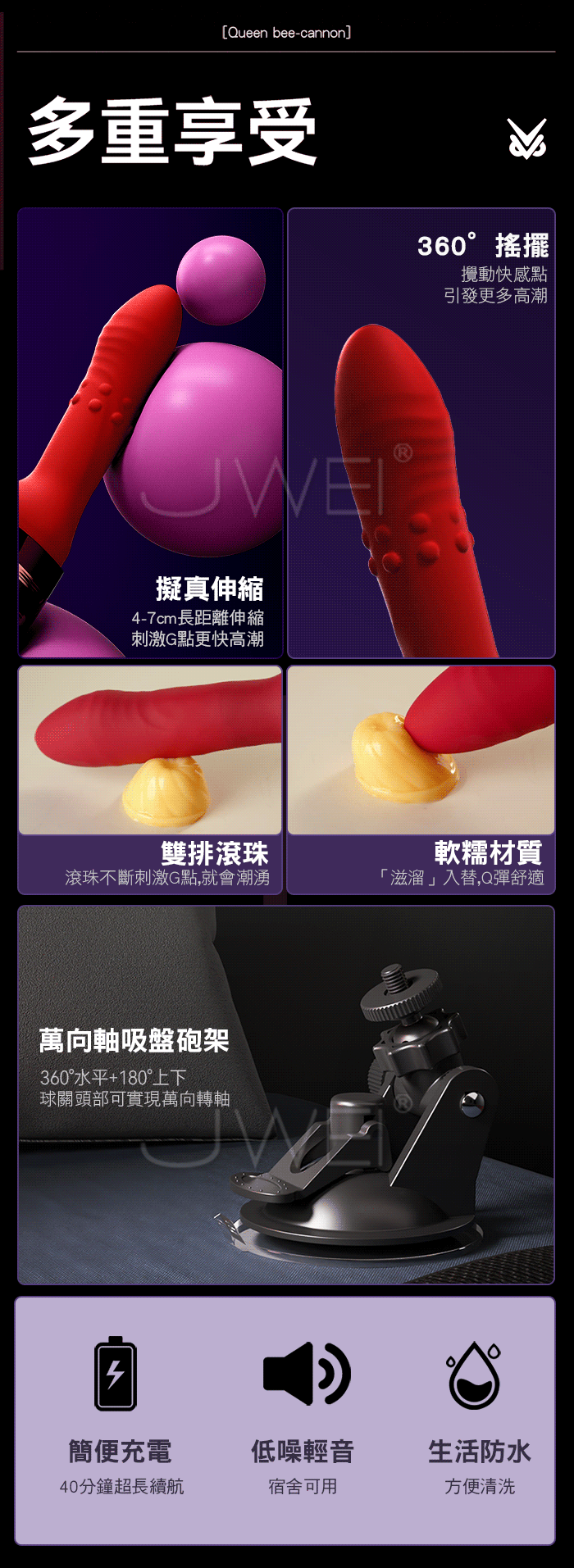 蜂后炮機-揉/插/震,三種模式結合 多重刺激下讓潮湧更快、更持久