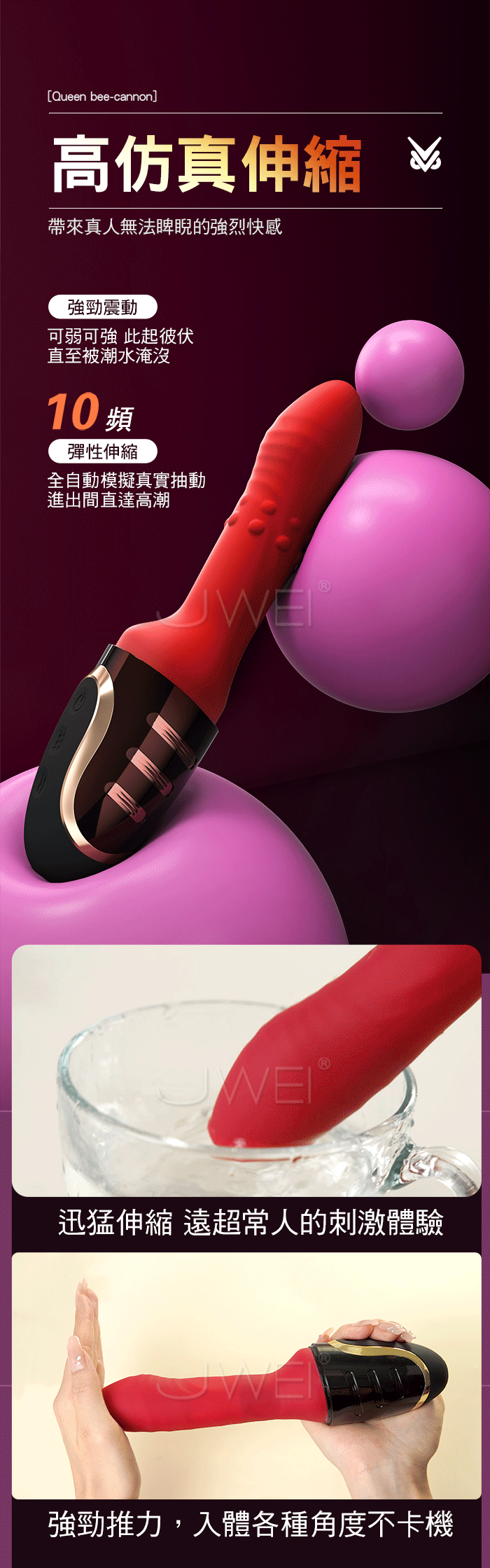 10頻高仿真伸縮+滾珠刺激,帶來真人無法睥睨的強烈快感