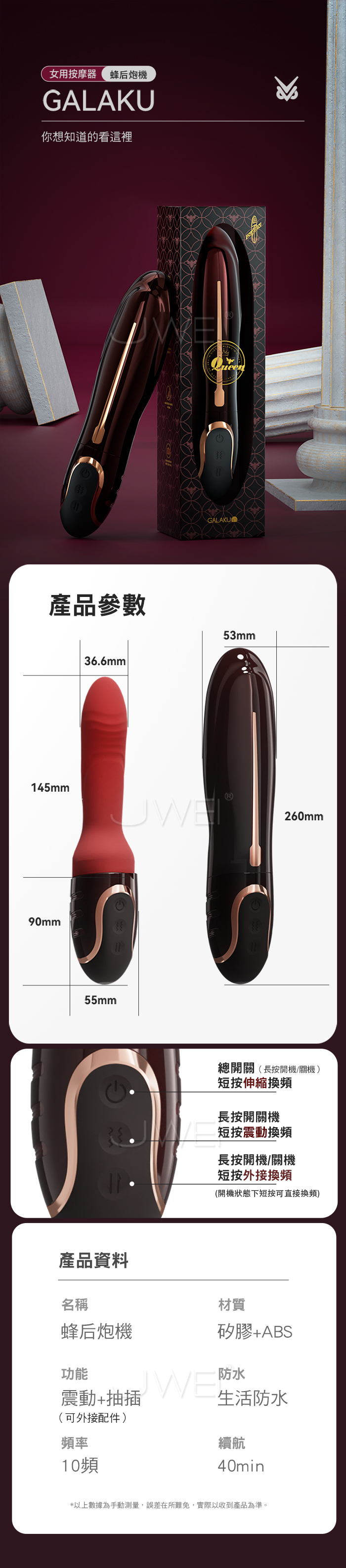 ■功能:10頻震動、10頻伸縮、滾珠、加溫