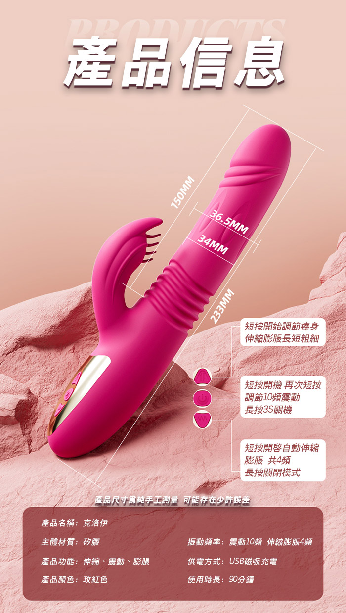 ■功能:10頻震動、4頻伸縮膨脹