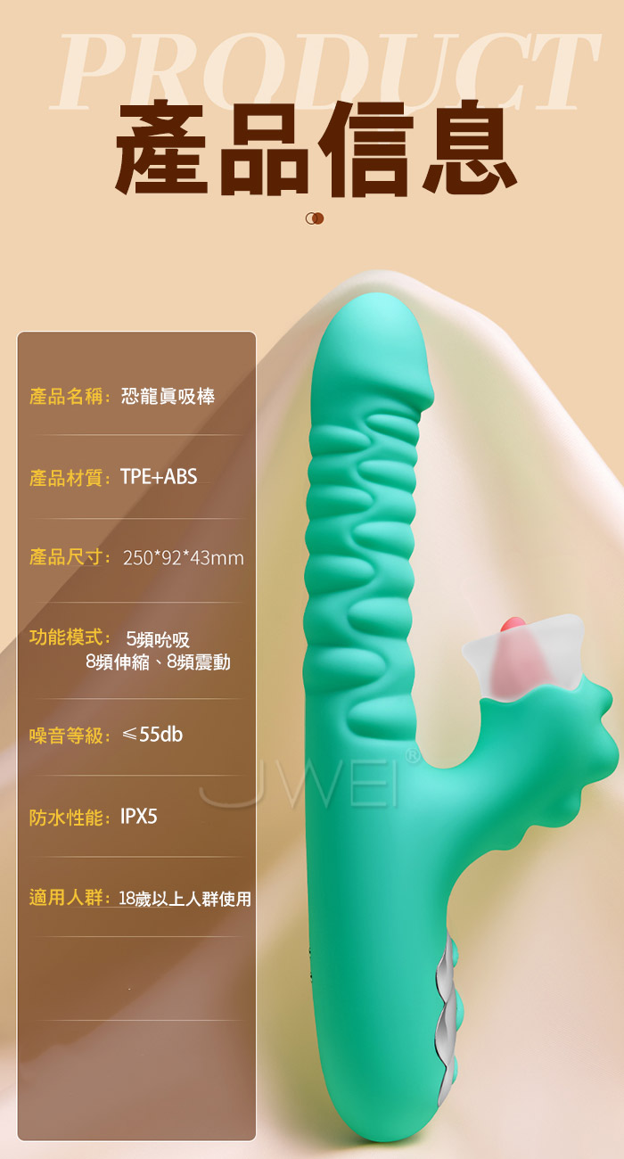 首頁 / 恐龍真吸棒.8頻伸縮震動5頻G點吸吮搖擺入體按摩棒-會抽插真吸舔