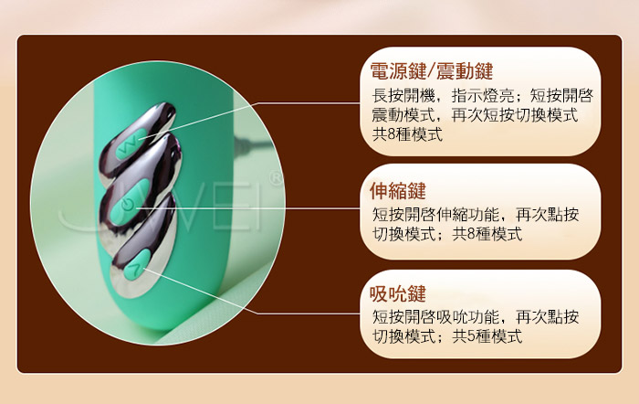 ■特色: 5頻吮吸、8頻伸縮、8頻震動