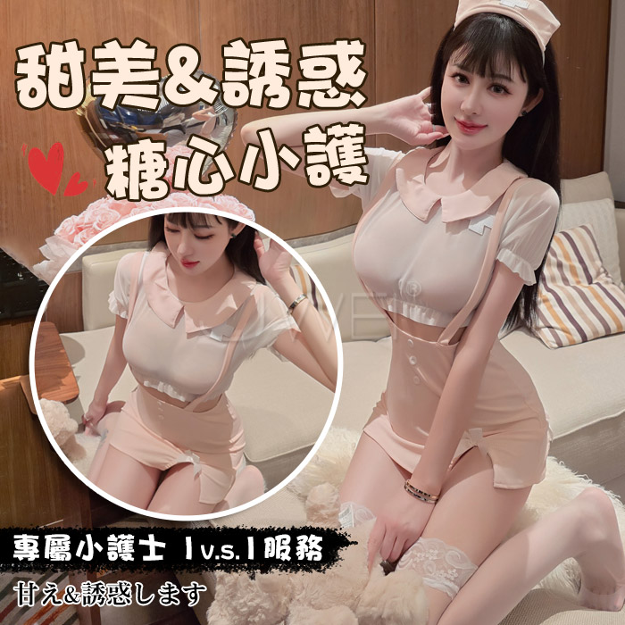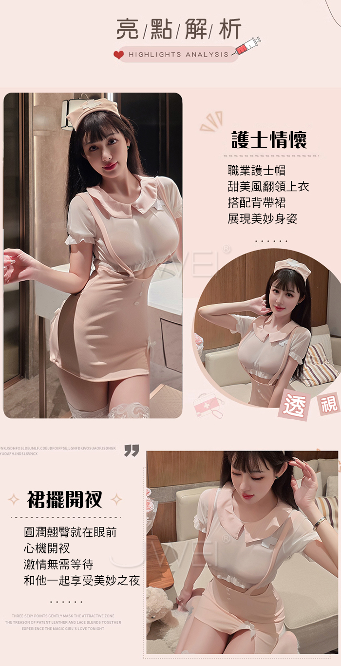 糖心小護.火辣半透乳溝裙襬開衩小護士扮演服【髪箍 +上衣+吊帶短裙+T褲】