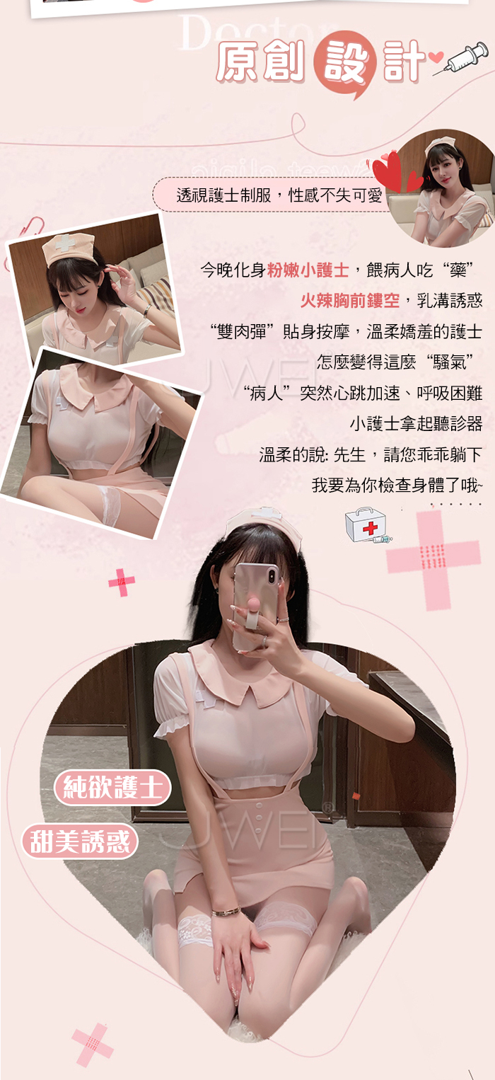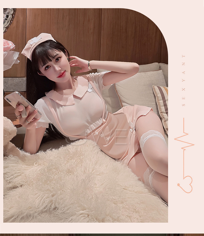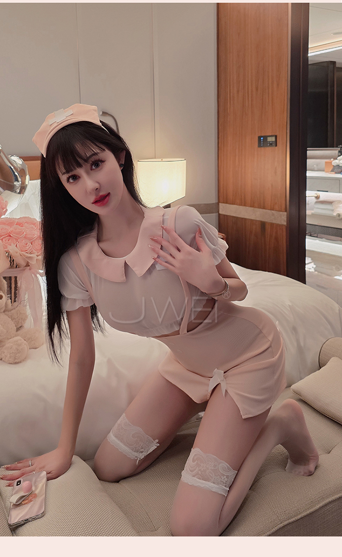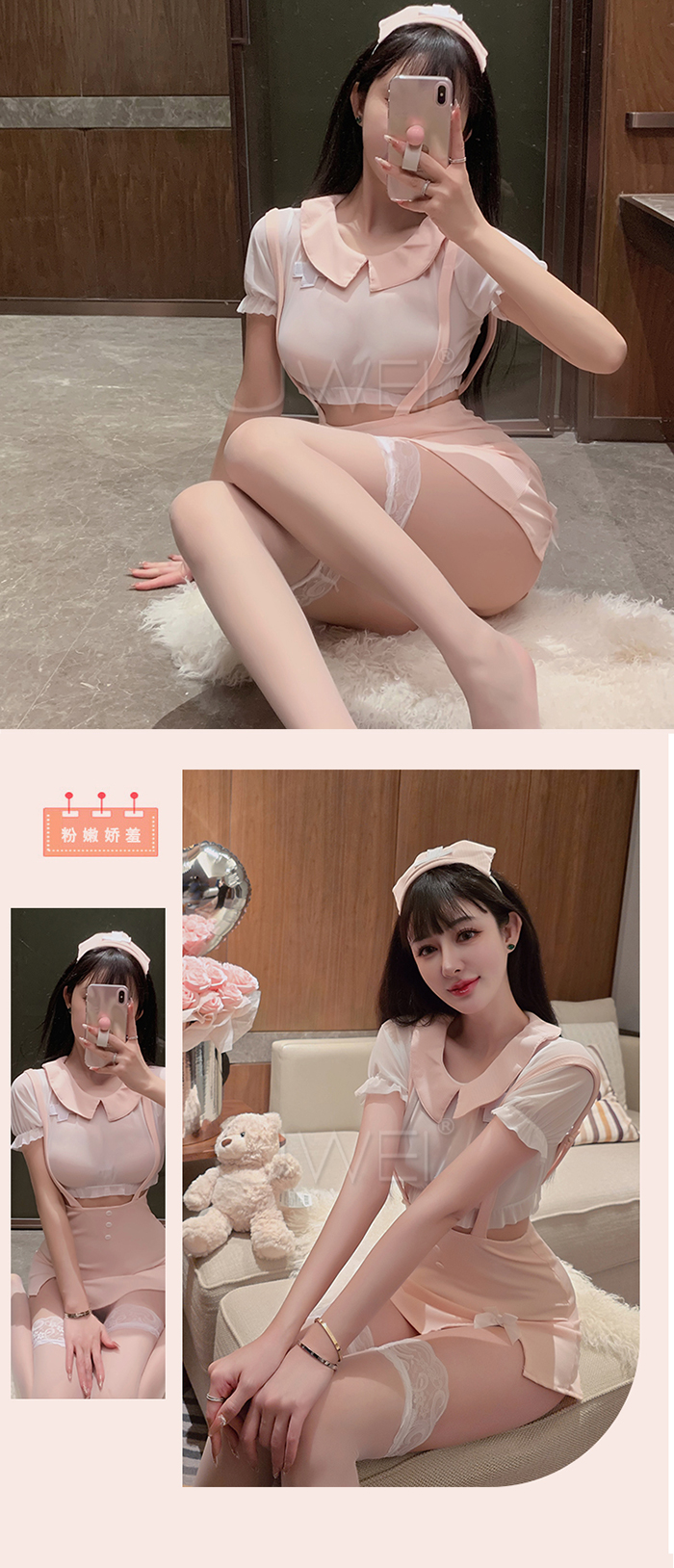 首頁 / 糖心小護.火辣半透乳溝裙襬開衩小護士扮演服【髪箍 +上衣+吊帶短裙+T褲】