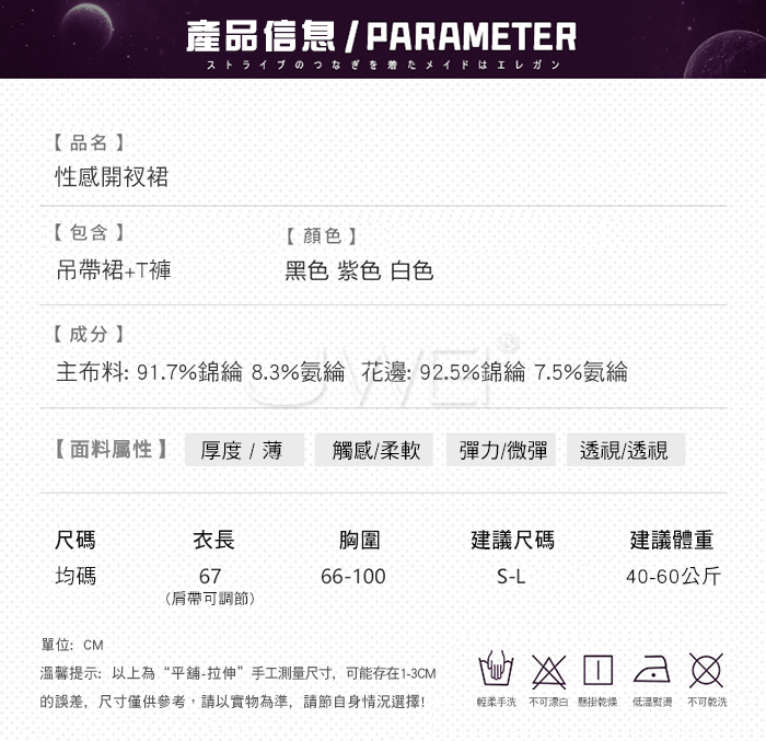 ■注意事項:基於保障消費者個人衛生,此貼身衣物恕不接受退換貨。