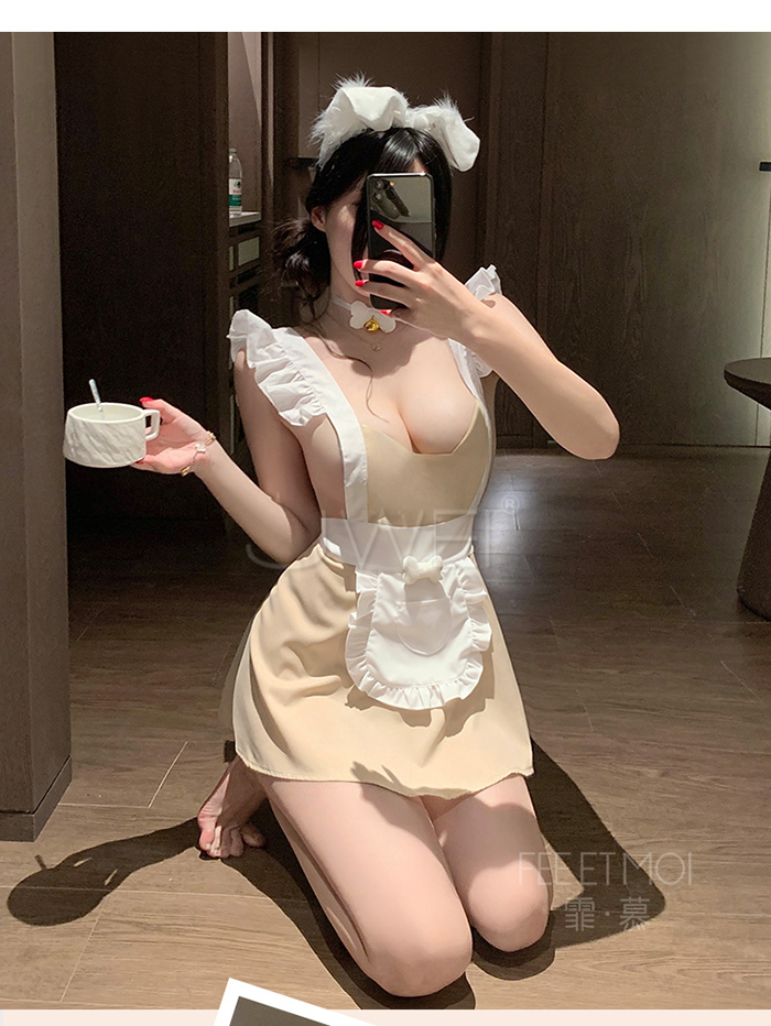 首頁 / 奶心甜寵.小狗甜心美背裙片開衩女僕圍裙制服【頸環+連身裙+T褲】