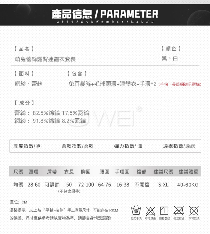 ■內容物:兔耳髮箍+毛球頸圈+連體衣+手環*2+白色花邊網襪