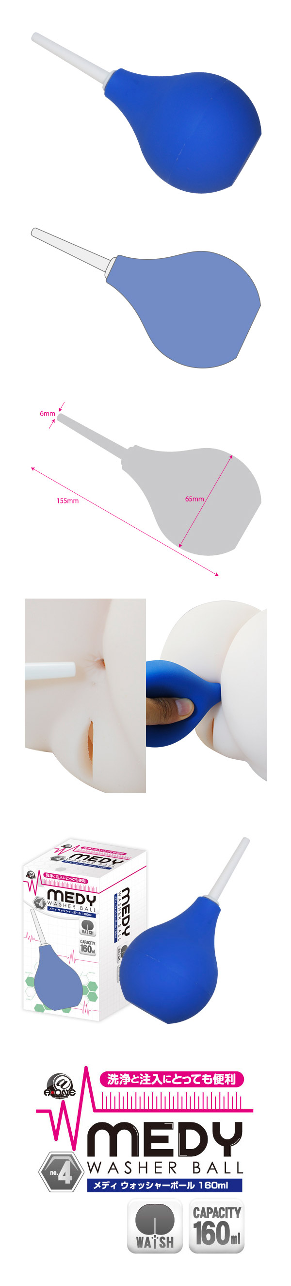 洗浄と注入にとっても便利なゴム製洗浄器「MEDY(メディ) no.4 ウォッシャーボール 160ml」。 容量が160mlなのでたっぷりと注入でき、本体がゴム製なので1人でも2人でも扱いやすく、手軽ながら納得の使用感。 さらに、ノズルも十分な長さがあるので奥までしっかり注入することができ、女性のデリケートゾーンの洗浄にも抜群の能力を発揮します。 大容量の水等で一気に洗浄したいときは、このアイテムで決まりです。
