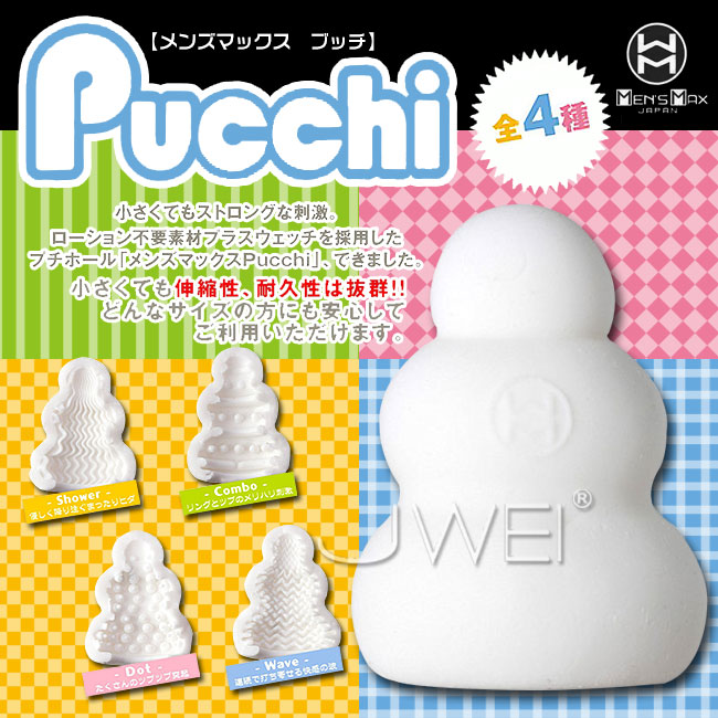 本品はジョークグッズです。その他の目的で使用になられた場合の責任は一切負いかねます。コンパクトホールが4種入ったお得なBOX。出先でオナホールを持ち運ぶのはかさばるし、ローションが無ければ使えない・・・そんな二重の悩みを一挙に解決するのが、「メンズマックスPucchi」。それぞれ特徴を持った「Wave(ウェーブ)」「Dot(ドット)」「Shower(シャワー)」「Combo(コンボ)」の4商品を、お得なセット販売を致します。