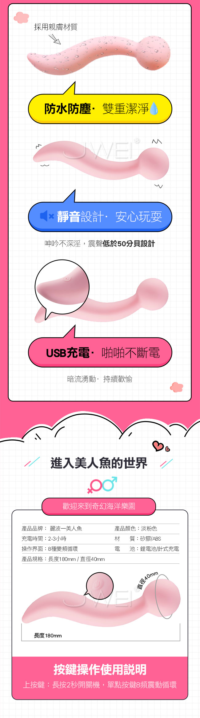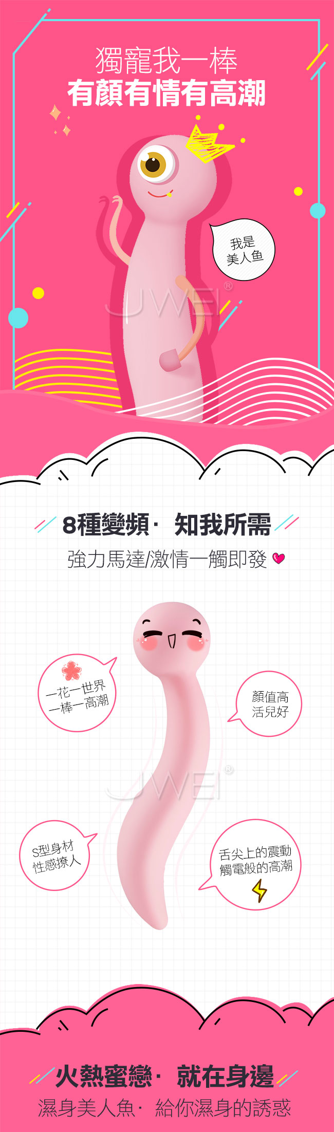 首頁 / 魚水之歡.美人魚 8段變頻防水靜音按摩棒
