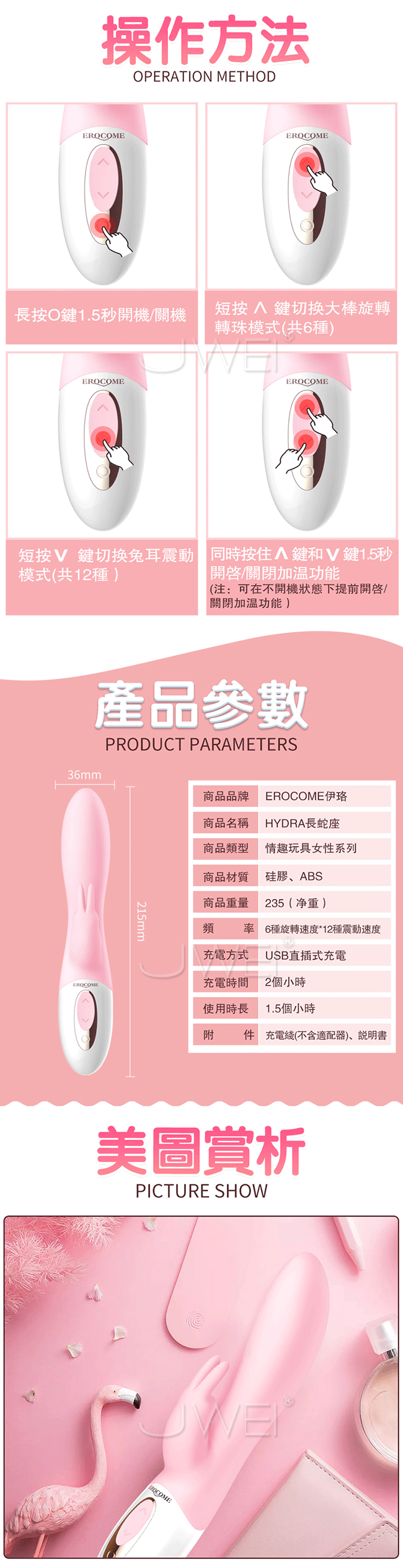 EROCOME伊珞.長蛇座Hydra 6x12段旋轉變頻雙震加溫360°轉珠按摩棒