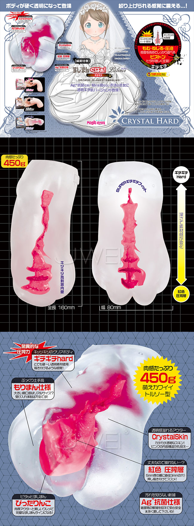 日本原裝進口Magic eyes.純潔注意-CRYSTAL HARD-紅色壓榨純潔膜通道透明硬型自慰套
