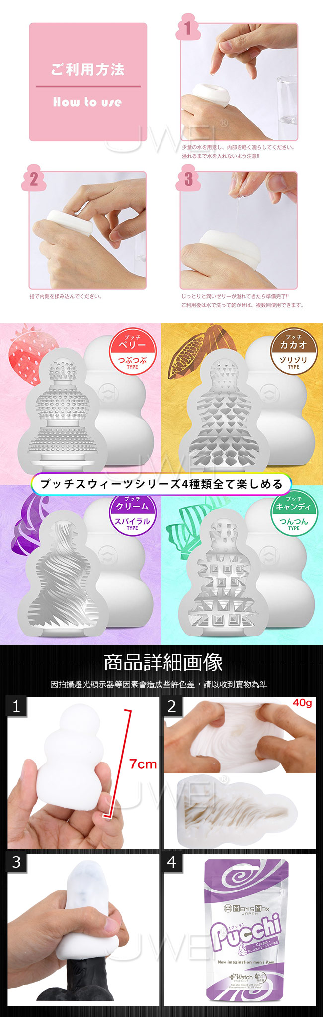 ■プッチ・クリーム クリームをモチーフにしたトルネード構造に搾り取られる。根元から先端まで余 すところなく刺激を与えてくれます。
