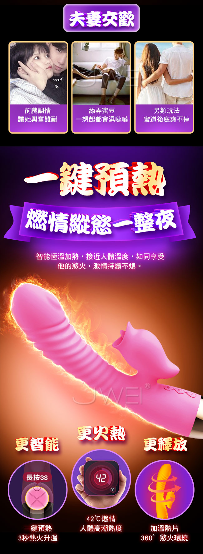 色色鳥舔震棒在口部柔唇吸吮,軟舌高速撩動及棒體多重刺激連環內外強擊下,引爆多重高潮!!採用雙層肌感矽膠,柔軟舒適又不失男根堅挺。給您逼真刺激快感。而貼心的智能恆溫加熱,接進人體溫度如同享受他的慾火,激情持續不熄。擁有防水低噪讓您邊玩邊洗體驗濕身快感,事後清洗也方便喔~