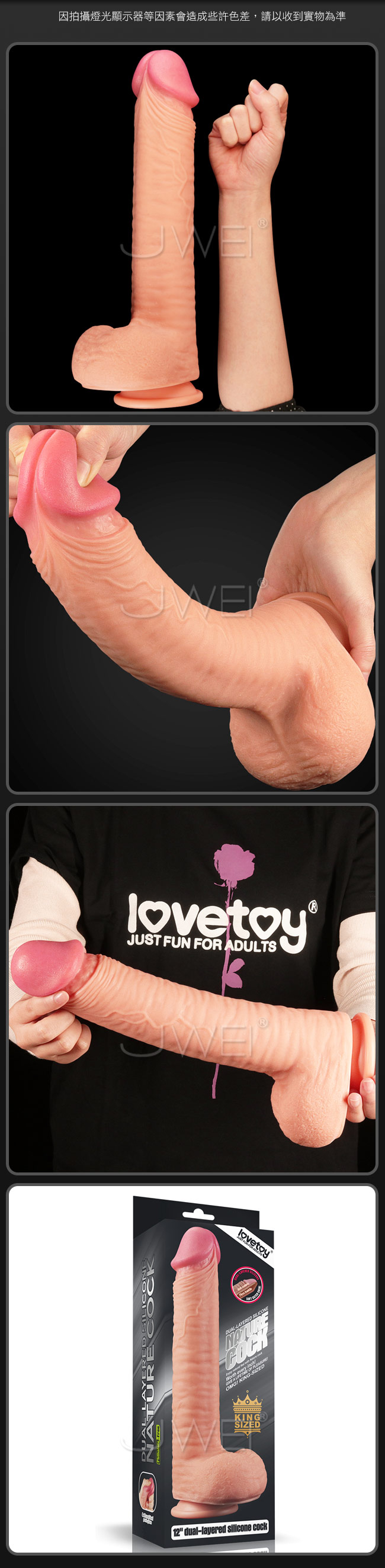 首頁 / Lovetoy.NATURE COCK系列-特大號雙層液態矽膠吸盤式逼真按摩棒-12吋(螺紋款)