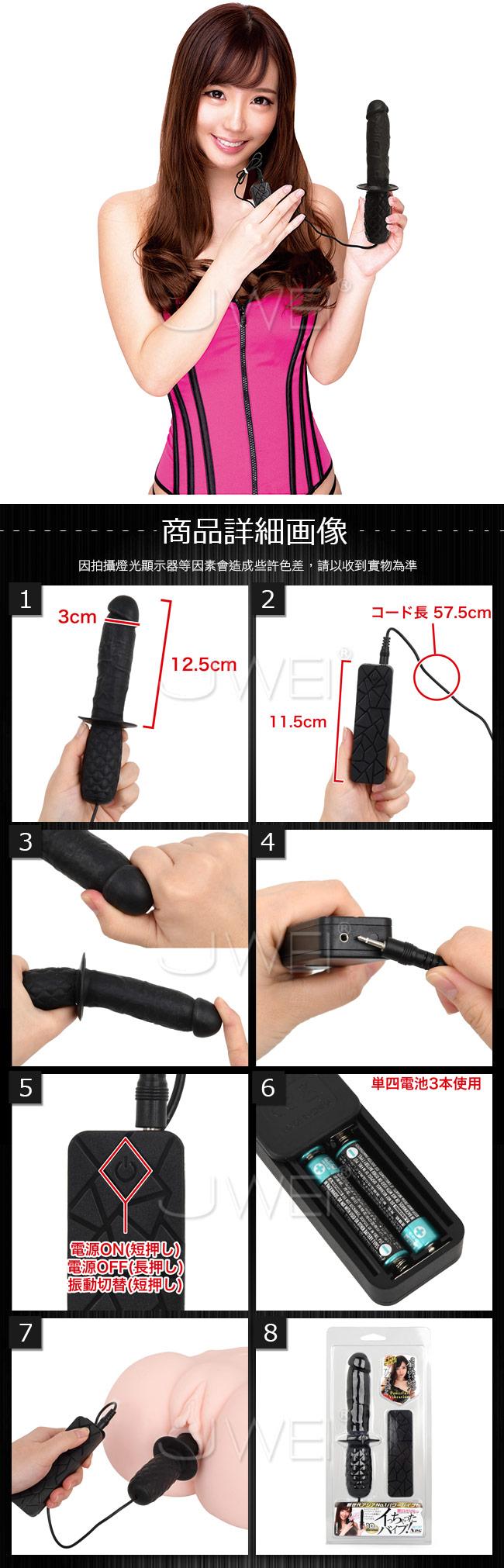 黒川さりながイッちゃったバイブの登場です。 使いやすいアジアンサイズのブラックボディが貴女を昇天に導くリアルペニスデザインのバイブレーター。 太過ぎたり、長過ぎたりしないので、初心者にもオススメです。 電池式のバイブなので、電池切れでも単4電池さえあれば、すぐに使用することが出来ちゃいます。 厳選された10種類の振動パターンを搭載しているので、お好みの振動を楽しめちゃいます。 あの、黒川さりながオススメする振動です。