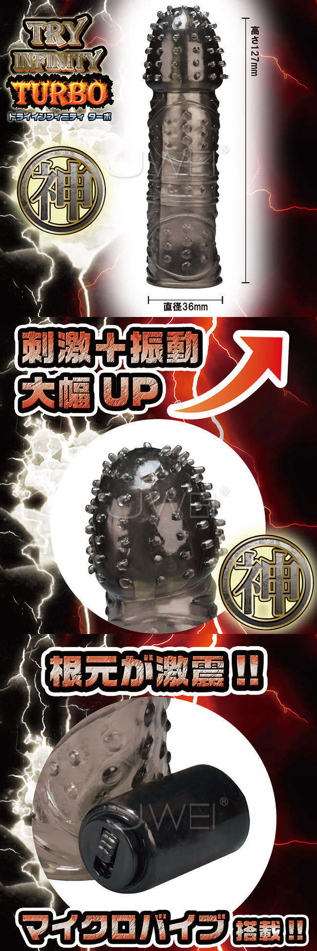 日本原裝進口A-ONE.Try Infinity TURBO 增粗延時震動狼牙水晶套-神