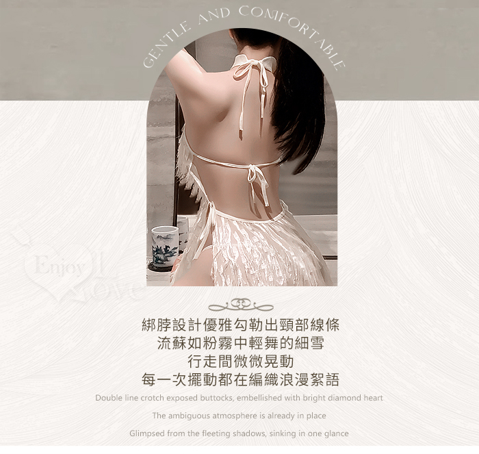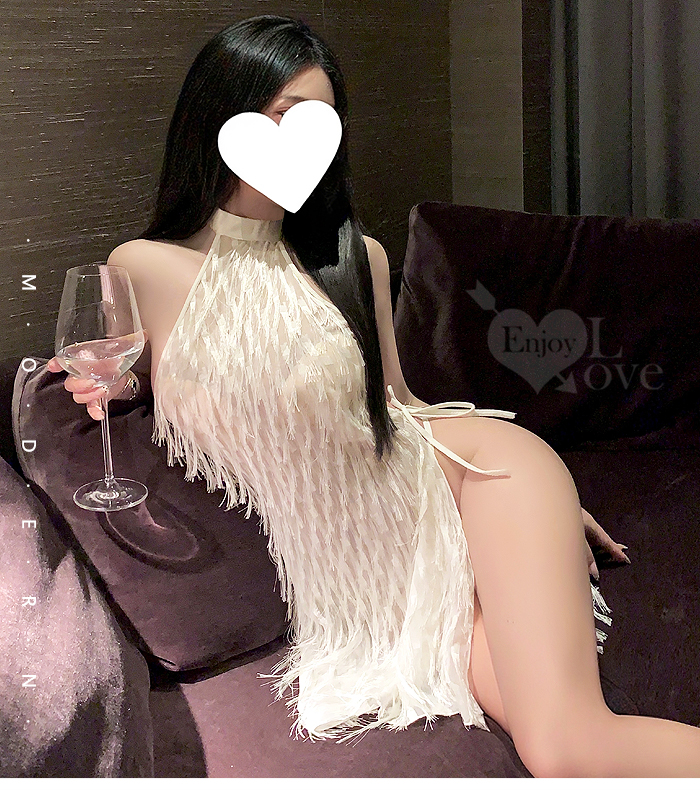 首頁 / 削肩綁脖耀眼流蘇裸背側開衩性感連身裙兩件組﹝杏﹞