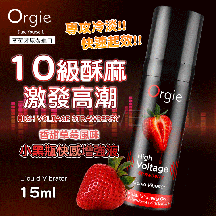 葡萄牙Orgie.Sexy Vibe! High Voltage Strawberry 10級酥麻小黑瓶快感增強液 15ml【草莓】
