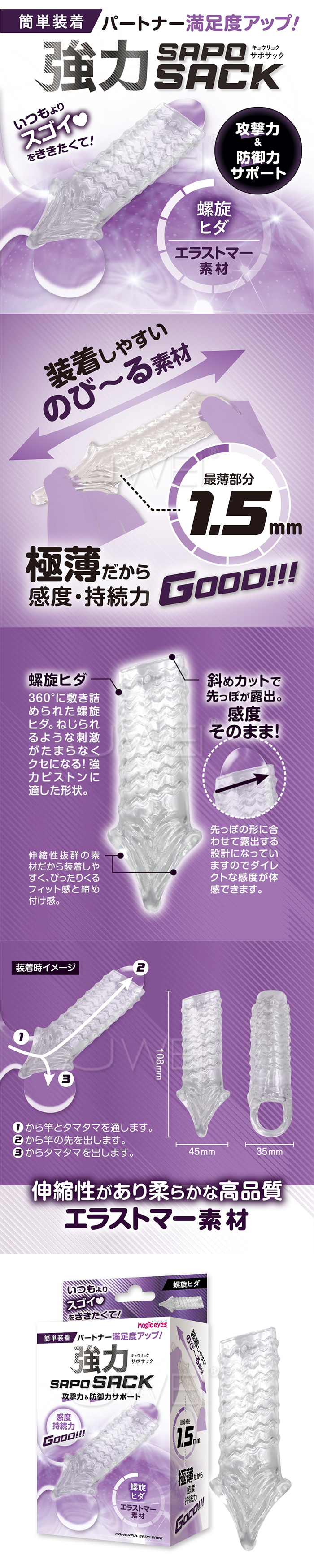 日本原裝進口Magic eyes.強力 SAPOSACK 螺旋皺褶 鎖精高潮套