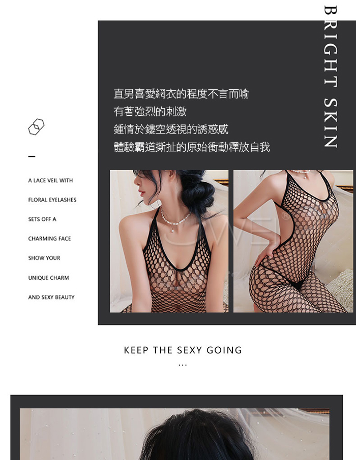 首頁 / 夜網深情.圓形鏤空網狀性感高彈連身網衣