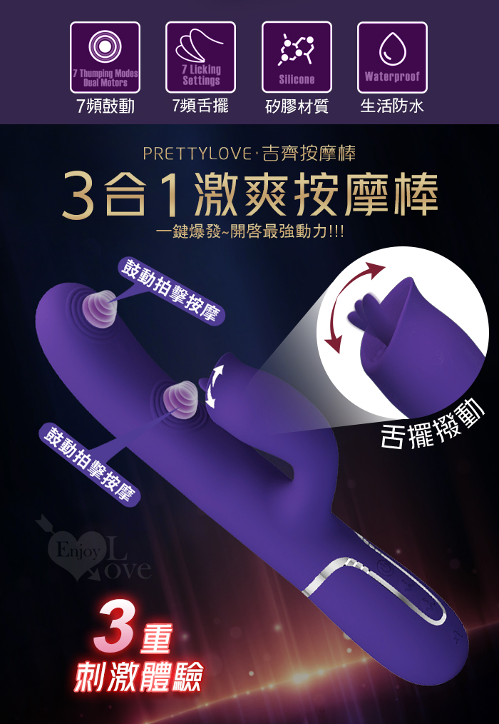 派蒂菈 ‧ Gigi 吉齊 7X7雙點鼓動拍擊+舌擺撥動 多功能按摩棒﹝一鍵爆發/內外享樂/滑順矽膠/磁吸充電﹞