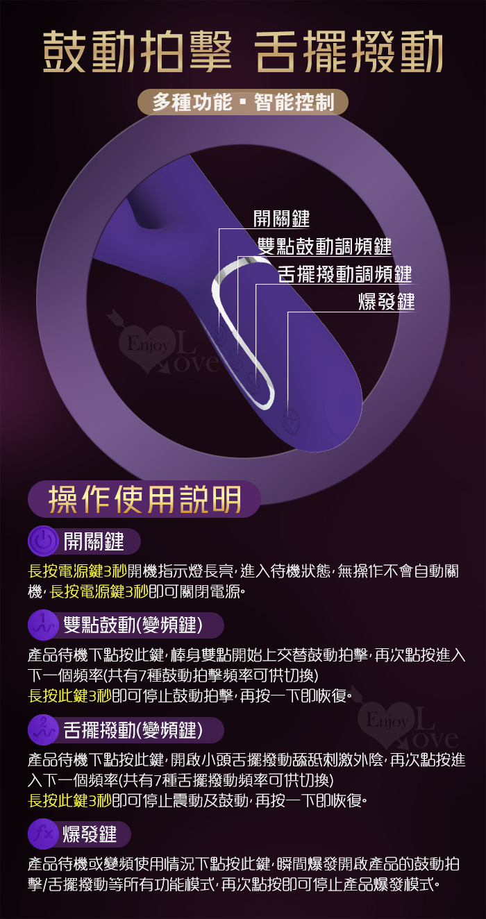 首頁 / 派蒂菈 ‧ Gigi 吉齊 7X7雙點鼓動拍擊+舌擺撥動 多功能按摩棒﹝一鍵爆發/內外享樂/滑順矽膠/磁吸充電﹞