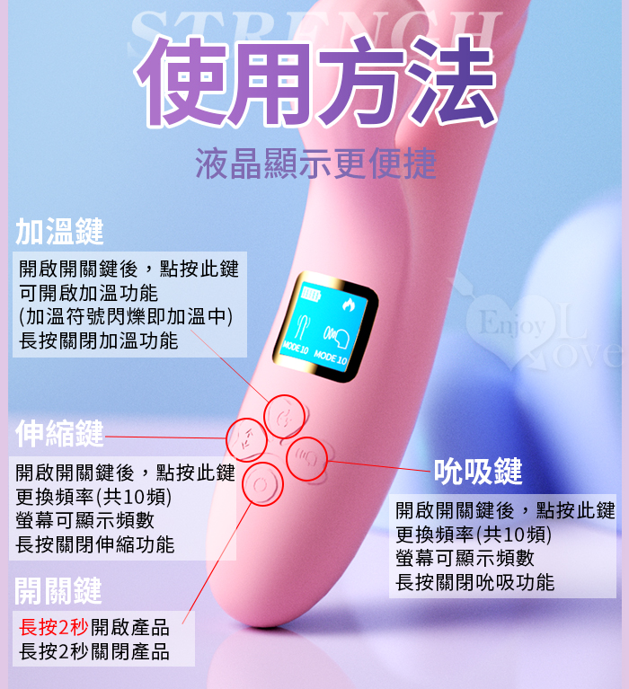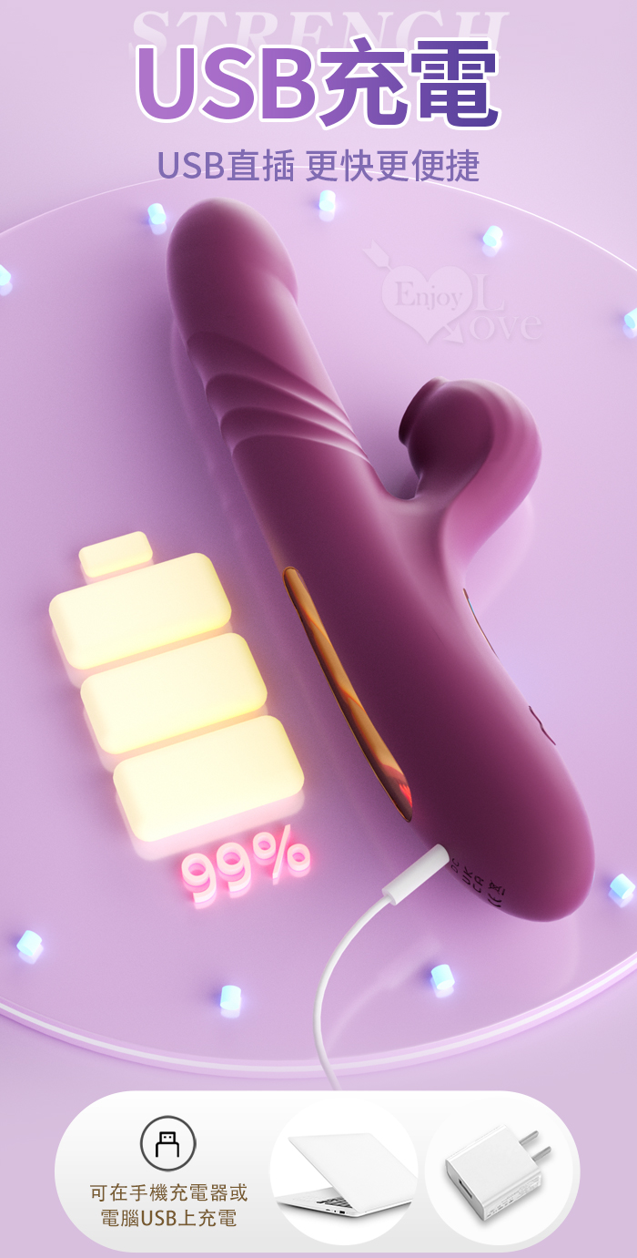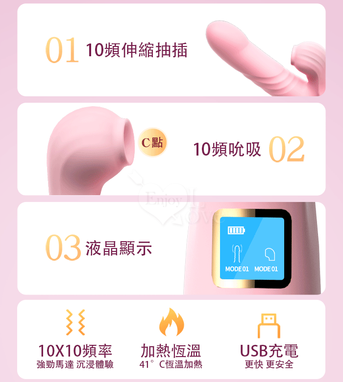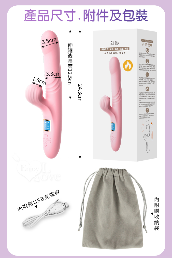 幻影 ‧ 10頻伸縮抽插X10頻吮吸智能內外夾攻按摩棒﹝加熱恆溫+液晶顯示頻率+USB充電﹞