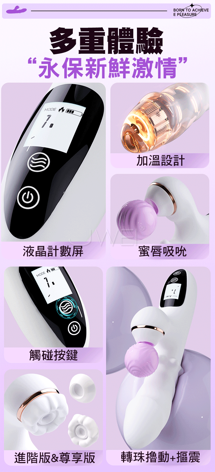 首頁 / 珠旋.轉珠上下旋轉內外刺激AG點 多功能按摩棒 (液晶營幕+擼珠+扣動+加溫+吮吸)尊享版