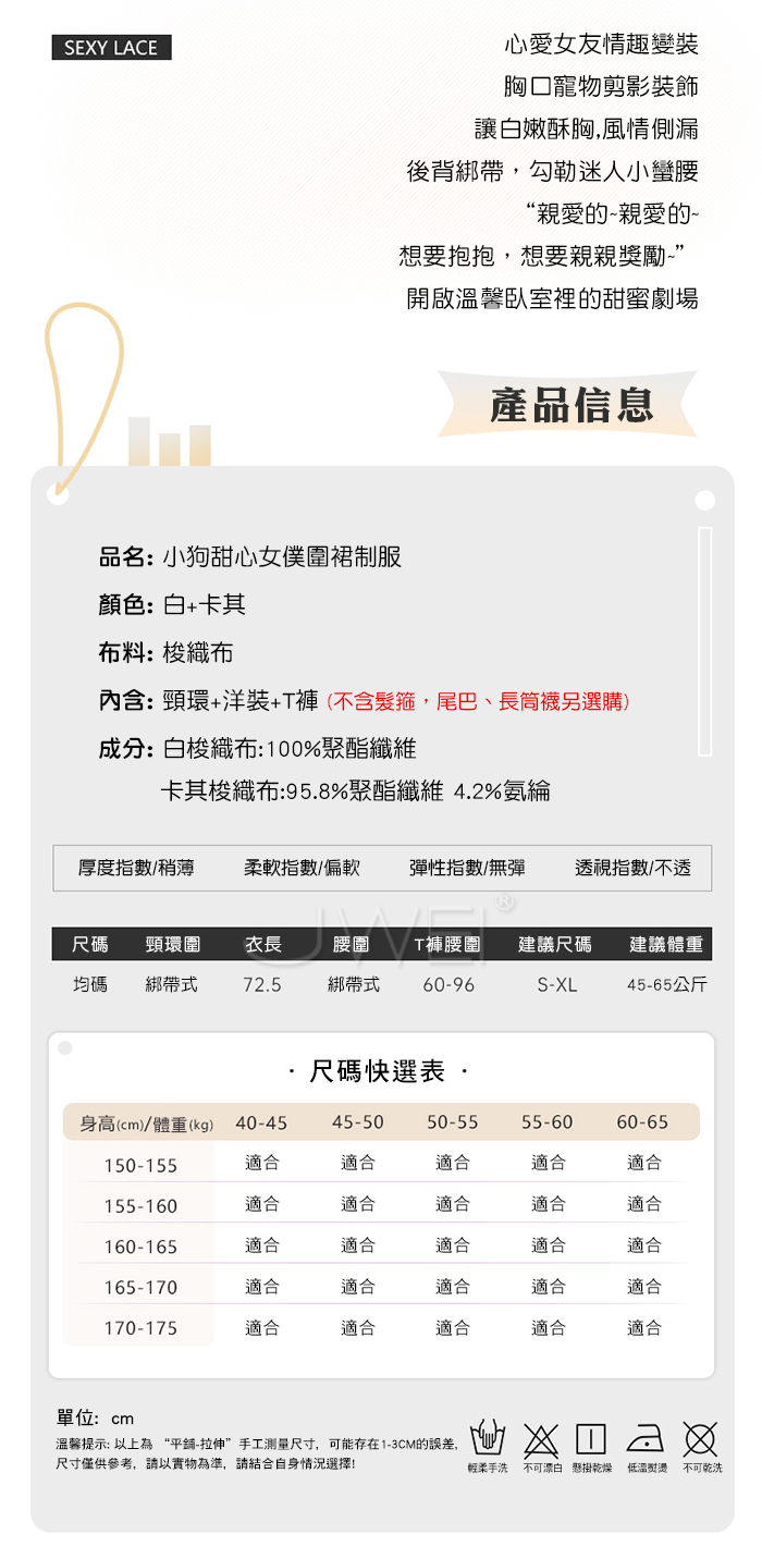 首頁 / 奶心甜寵.小狗甜心美背裙片開衩女僕圍裙制服【頸環+連身裙+T褲】