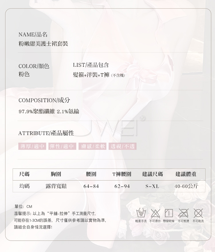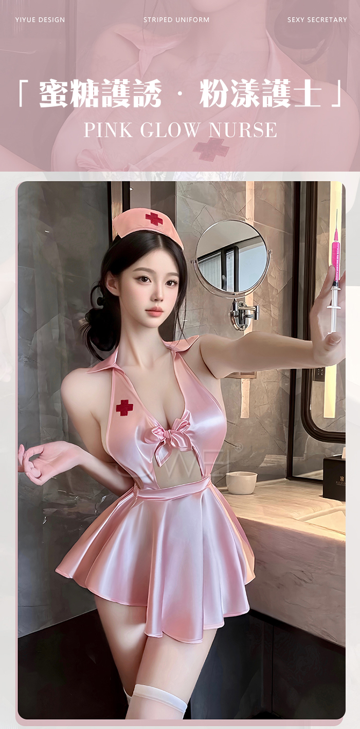 首頁 / 蜜糖護誘.粉嫩甜美深V露溝高腰短百褶裙擺護士裝【髮箍+洋裝+T褲】